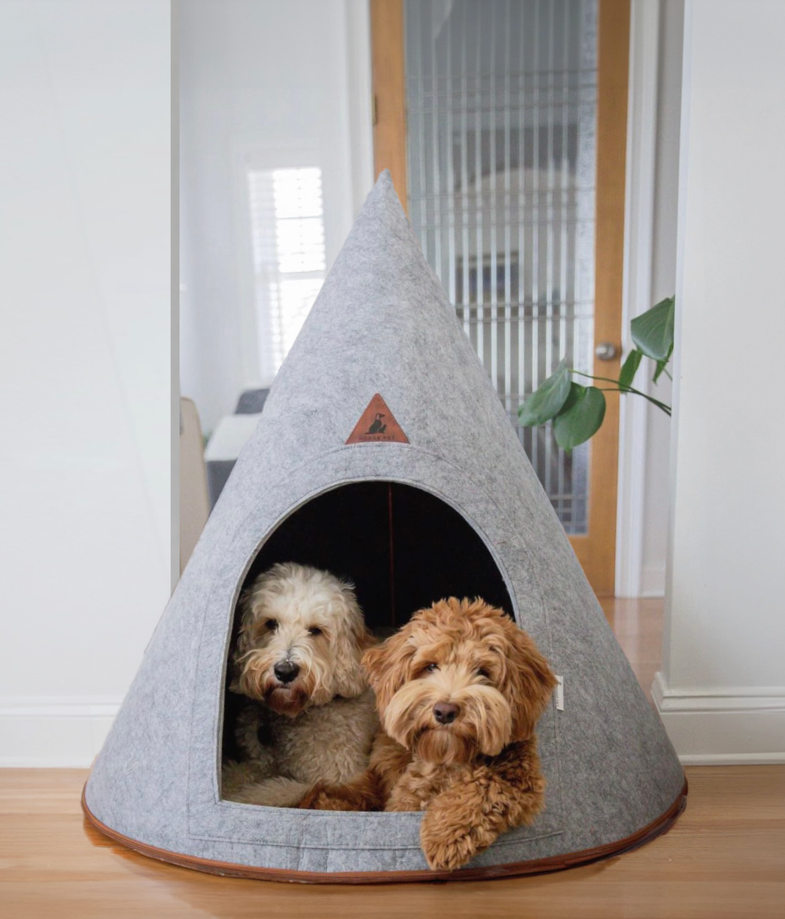 Murray and Millie are Golden Doodles weighing 22 lbs and 30 lbs, respectively. They both comfortably fit into our Pet Cave Harry (XXL).